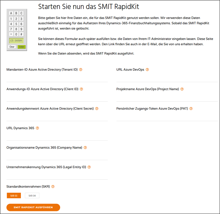 Was vorher nur durch einige komplexe manuelle Schritte in Azure DevOps und in anderen Systemen möglich war, lässt sich nun mit der SMIT-RapidKit-Webseite im Handumdrehen einheitlich an einer Stelle ausführen. Durch die Webseite haben wir eine einfache, benutzerfreundliche Bedienung für das SMIT-RapidKit geschaffen. Von der Bestellung bis zur Bezahlung ist alles in der Webseite integriert und auch das Starten der SMIT-RapidKit-Ausführung ist mit inbegriffen. Ich brauche mich also nicht mehr mit verschiedenen Systemen und Plattformen auseinandersetzen, sondern habe einen zentralen Ort, an dem ich alle Schritte durchführen kann. Wie einfach es ist, beschreibe ich nachfolgend.