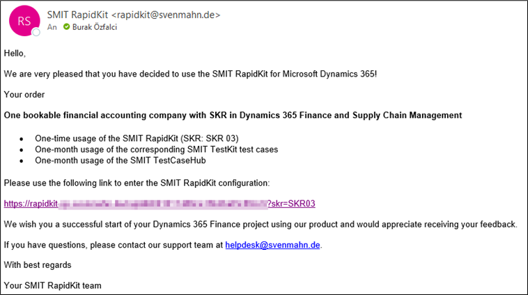 Zusätzlich erhielt ich in der E-Mail alle wichtigen Informationen und Links, die ich für die Ausführung noch benötigte.
