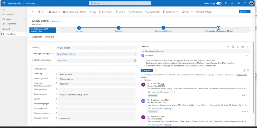 Die Informationen werden heutzutage sogar mit den sogenannten Copilot Momenten aufbereitet. Copilot Momente ist ein KI-Feature, das innerhalb der Zeitachse stattfindet und eine Zusammenfassung dessen erstellt, was tatsächlich an Kommunikation stattgefunden hat. Diese Zusammenfassung der Kommunikation hilft dabei, sehr einfach und schnell Entscheidungen bezüglich der Anfrage zu treffen.